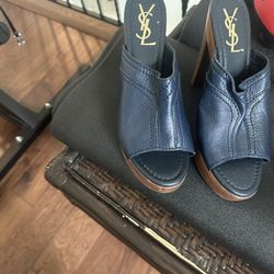 YSL Navy Wood Clog Heels$150Boca Raton, FL