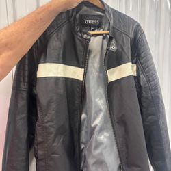 Guess black leather men’s waist jacket extra large with a white stripe. $50$50Fort Lauderdale, FL