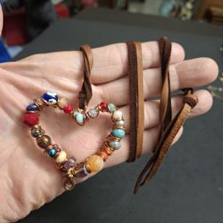 Copper Plated Heart Shaped Colorful Pendant, Gemstones Murano Style-Evil Eye Bead, Aurora Borealis, Chakra, Quartz, Agate Etc W/Suede Leather Chain 36$15Tamarac, FL