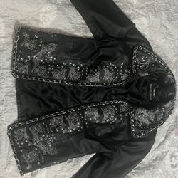 Black Leather Jacket With Silver Chains White Stitching Pamela Mccoy$45Boca Raton, FL