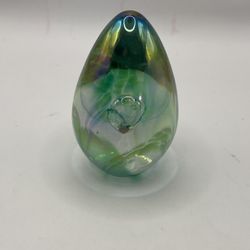 Murano Style Hand Blown Green & White Swirl Egg Shaped Art Glass Paperweight 2.75"H X 2.5"W$20Fort Lauderdale, FL