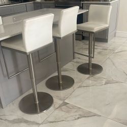 Set of 3 Modern White Bar Stools – Faux Leather with Chrome Base$300Dania Beach, FL