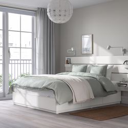 Ikea Nordli Storage Bed With Headrest, White, Queen Size, Delivery, Purple Mattress Extra $250Hollywood, FL