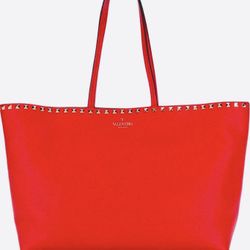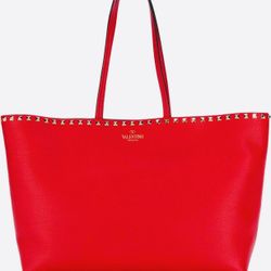 Auth NEW Valentino Garavani Large Rockstud Calfskin Red Shopper Tote Bag 1380$$1,099Tamarac, FL