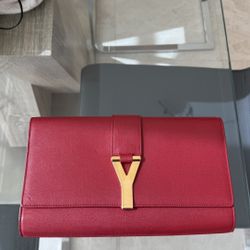 YSL Textured Calfskin Classic Y Ligne Clutch Red$350Aventura, FL