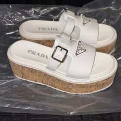 Prada White Platform Sandals with Cork Wedge $650Pompano Beach, FL