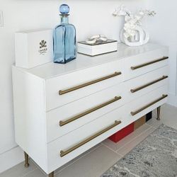 Meridian Furniture Marisol White 6 Drawer Dresser with Gold metal Legs and Handle $399Sunny Isles Beach, FL
