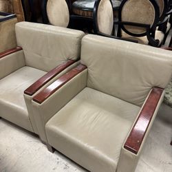 Pair of Nemschoff Brava Classic armchairs with cream leather upholstery and wooden arms$39Fort Lauderdale, FL