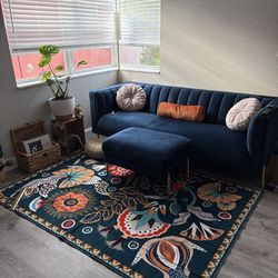 Blue velvet sofa with ottoman$125Lake Worth, FL