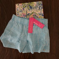 NWT Lilly Pulitzer Lilo Linen Shorts Seabreeze Blue Along the Same Line Check XS$30Lake Worth, FL