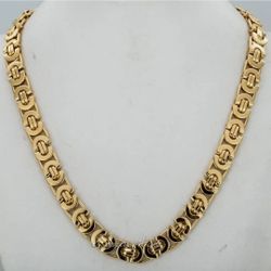 Gold Plated Popular Flat Byzantine Stainless Steel Necklace with bracelet 8mm 9".$120Fort Lauderdale, FL