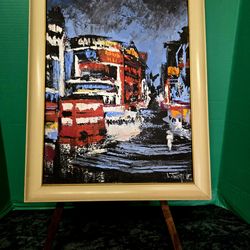 The painting features an abstract expressionist depiction of urban street scene. Time Sq$87Boca Raton, FL