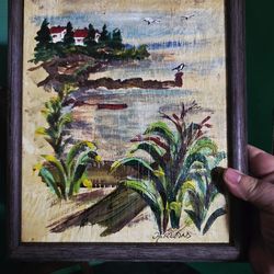 Vintage landscape oil painting depicting a coastal or lakeside scene Signed HERLAND? 9.5"×11.5"$49Boca Raton, FL