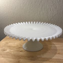 Fenton Silver Crest ruffled milk glass pedestal cake stand.Diameter 12.5”, h4.7”, 4.2lbs. More👇$45Boca Raton, FL