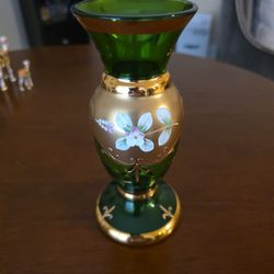Czech Bohemian Egermann Moser 24kt Gold Green Art Glass 7.5" Vase$35Boca Raton, FL