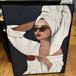 Her morning routine embellished canvas 23 x 29$60Boca Raton, FL