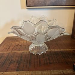Vintage Crystal Industries Clear & Frosted Glass Toscana Banana Boat Fruit Bowl$20Boca Raton, FL