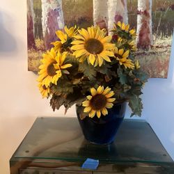 Silk Daisy Arrangement In Blue Vase$15Boynton Beach, FL