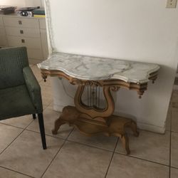 Antique Console Table With Green Marble Top In Good Condition $1,400Pompano Beach, FL