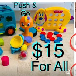 $15 Bundle of educational Baby Toys Fisher price Tomy,Push & Go baby bird toy,B Toy animal sorting$15Boca Raton, FL