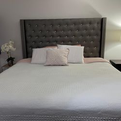 Like-New King Tufted Wingback Bed – Light Gray –Mattress Included$200Pompano Beach, FL