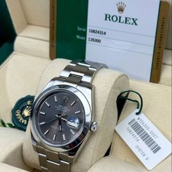 2020 Rolex Datejust 41mm stainless steel oyster bracelet smooth bezel rhodium stick dial 126300 watch box booklets tag full set$9,400Pompano Beach, FL