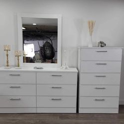 NEW DRESSER WHIT MIRROR, CHEST AND 2 NIGHTSTANDS. GREAT OFFER ! - NUEVA CÓMODA CON ESPEJO , GAVETERO Y 2 MESITAS DE NOCHE ¡ GRAN OFERTA !$570Fort Lauderdale, FL