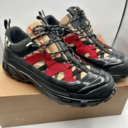 Burberry Arthur Check Chunky Sneakers Red Black Archive Beige Size 43$399Boynton Beach, FL