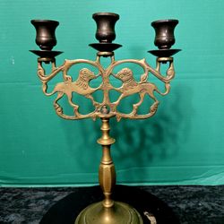 Vintage Brass Three Arms Candelabra Lion Motif Ornate Candle Holder 13.5"$99Boca Raton, FL