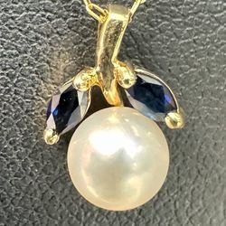 14k yellow gold pearl sapphire ball pendant charm$99Boca Raton, FL