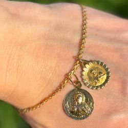 18k solid yellow gold 7” bracelet & two 14k yellow gold Jesus charms/ pendants$475Boca Raton, FL