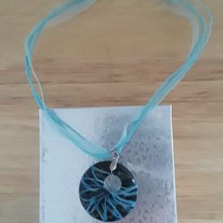 NEW blue swirls circle glass charm on ribbon necklace with gift box $5 FIRM$5Boca Raton, FL