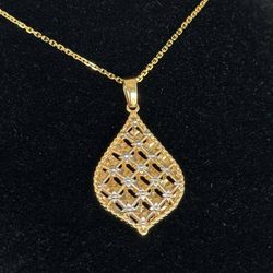 14K Two Tone Gold Fancy Checkered petal shape Charm Pendant with 18” Chain$499Boca Raton, FL