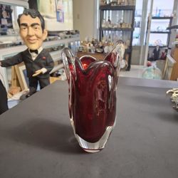Murano Sommerso Hand Blown Art Glass Ruby Red Bud Vase Encased With Clear Glass Hankerchief Styling Vintage 1960's 6.75" Tall $40Pompano Beach, FL