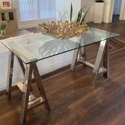 Glass Top Silver Modern Table / Desk $500Boca Raton, FL