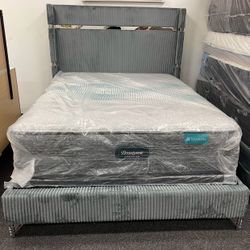 Blue Or Grey Velvet Queen Bed Finance Available No Credit Needed $345Fort Lauderdale, FL