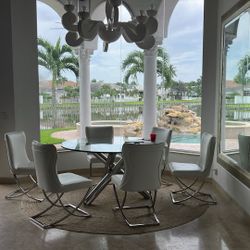 60 Inch Round Glass And Chrome Dining Table With 5 White Chairs And Chrome Chairs$1,300Boca Raton, FL