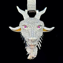10k white gold bussdown iced out 3CTW natural diamond ruby Goat head pendant charm$2,500Boca Raton, FL