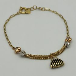 14k three tone CZ stone Bag charm heart fashion 8” bracelet$900Boca Raton, FL