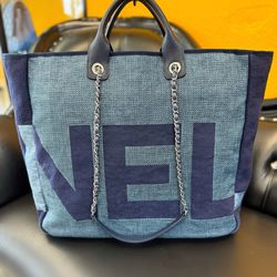CHANEL Denim Deauville Logo Shopping Chain Tote Large Bag & Card$2,950Boca Raton, FL