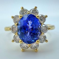 18k yellow gold Vintage 3Ct Oval Tanzanite 1.6CTW Natural Diamond Flower Cluster Ring$3,750Boca Raton, FL