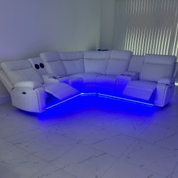 BRAND NEW POWER RECLINING SECTIONAL SOFA WITH SPEAKERS,BLUETOOTH,LED LIGHTS,USB PORT,STORAGE AND CUP HOLDERS