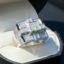 14k solid white gold princess cut and baguette 3.5CTW diamond square cross menβs fashion ring sz 8.5$3,600Boca Raton, FL