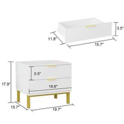 NEW - Set of 2 Nightstands with 2 Storage Drawers & Gold Metal Legs, Modern Bedside Table Sofa End Side Table, White$100Oakland Park, FL