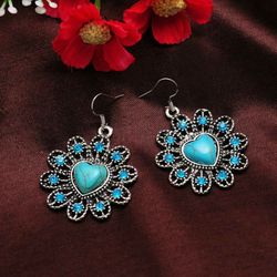 Tribal Tibetan Sterling Silver Turquoise Rhinestone Flower Heart Earrings$15Fort Lauderdale, FL