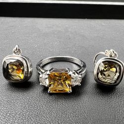 925 Sterling Silver 3 Stone Ring and gorgeous yellow stones earrings set$120Boca Raton, FL