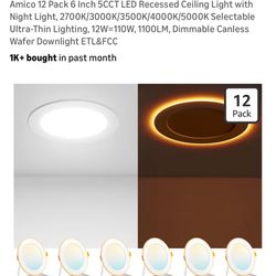 Amico 6 Pack 6 Inch 5CCT Ultra-Thin LED Recessed Ceiling Light with Metal Junction Box$25St. Petersburg, FL