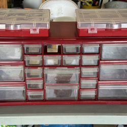 Small parts organizer with 2 lidded trays mounted to the top. Measuring 20” x 12” x 6”. Includes drawer dividers!$20Parrish, FL