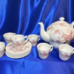 Nikko Double Phoenix Pink Flora Teapot Set W/6 Demitasse Cup And Saucer Set Nice$34Gulfport, FL