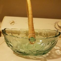 Vintage Indiana Glass Basket / Bowl With Bamboo Handle. 10x9 X4.5$20Largo, FL